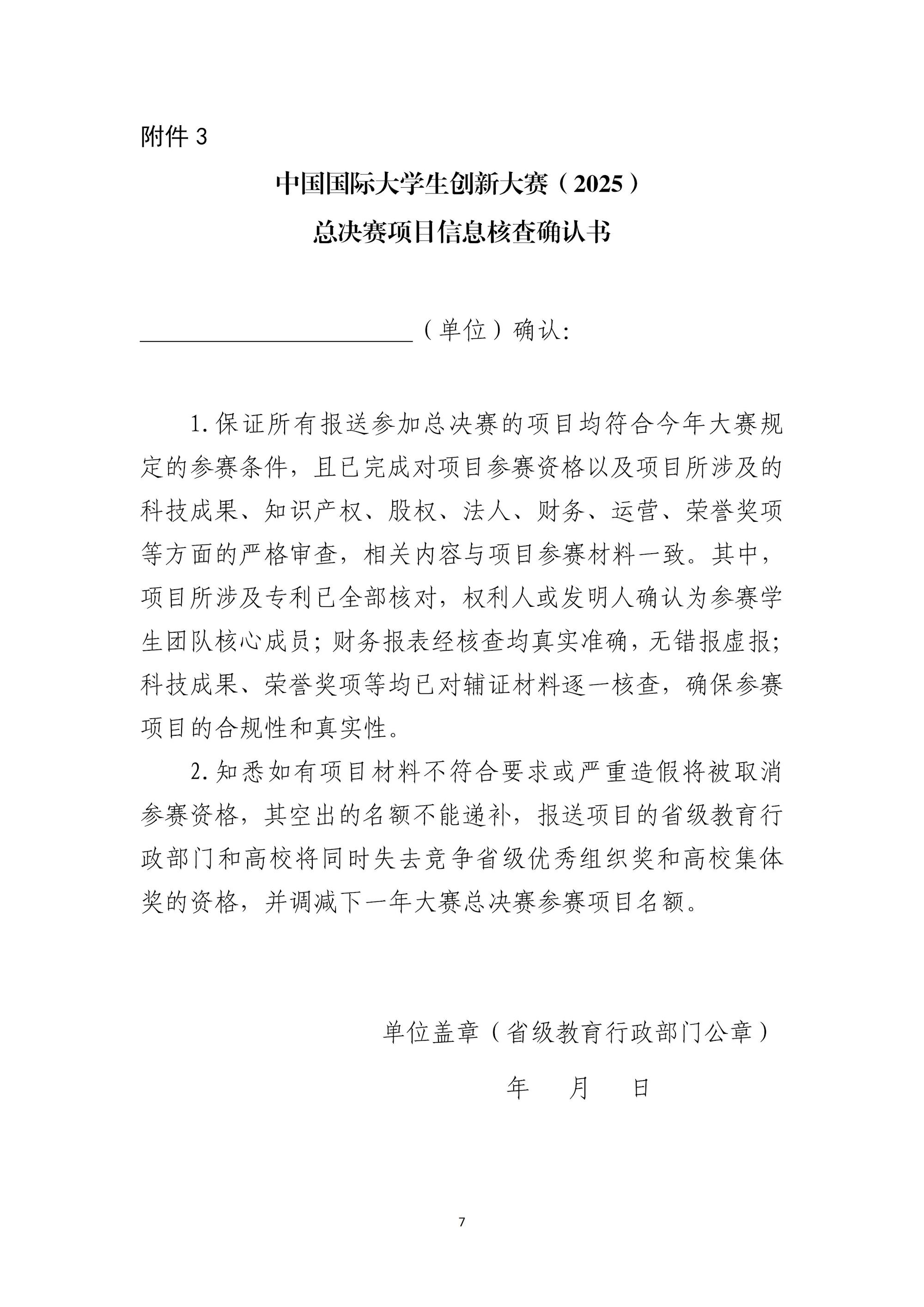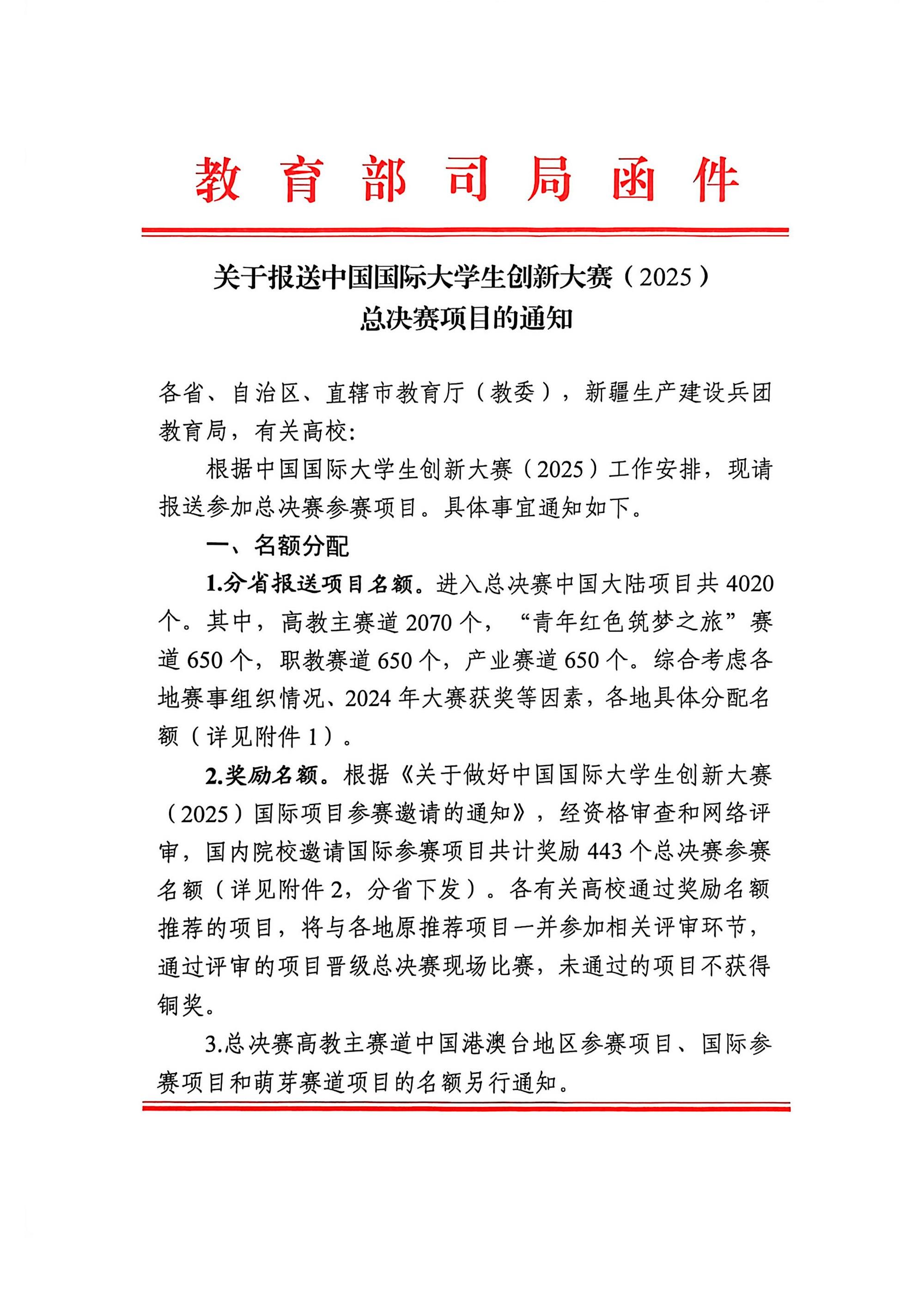 关于报送中国国际大学生创新大赛(2025)总决赛项目的通知 来源:文/蒙贵货 图/蒙贵货 发布时间:2025-10-20 10:59:52 浏览次数: 次 【字体:小 大】 关于报送中国国际大学生创新大赛(2025)总决赛项目的通知.pdf 终审:cxcyxy001 【打印正文】 相关信息