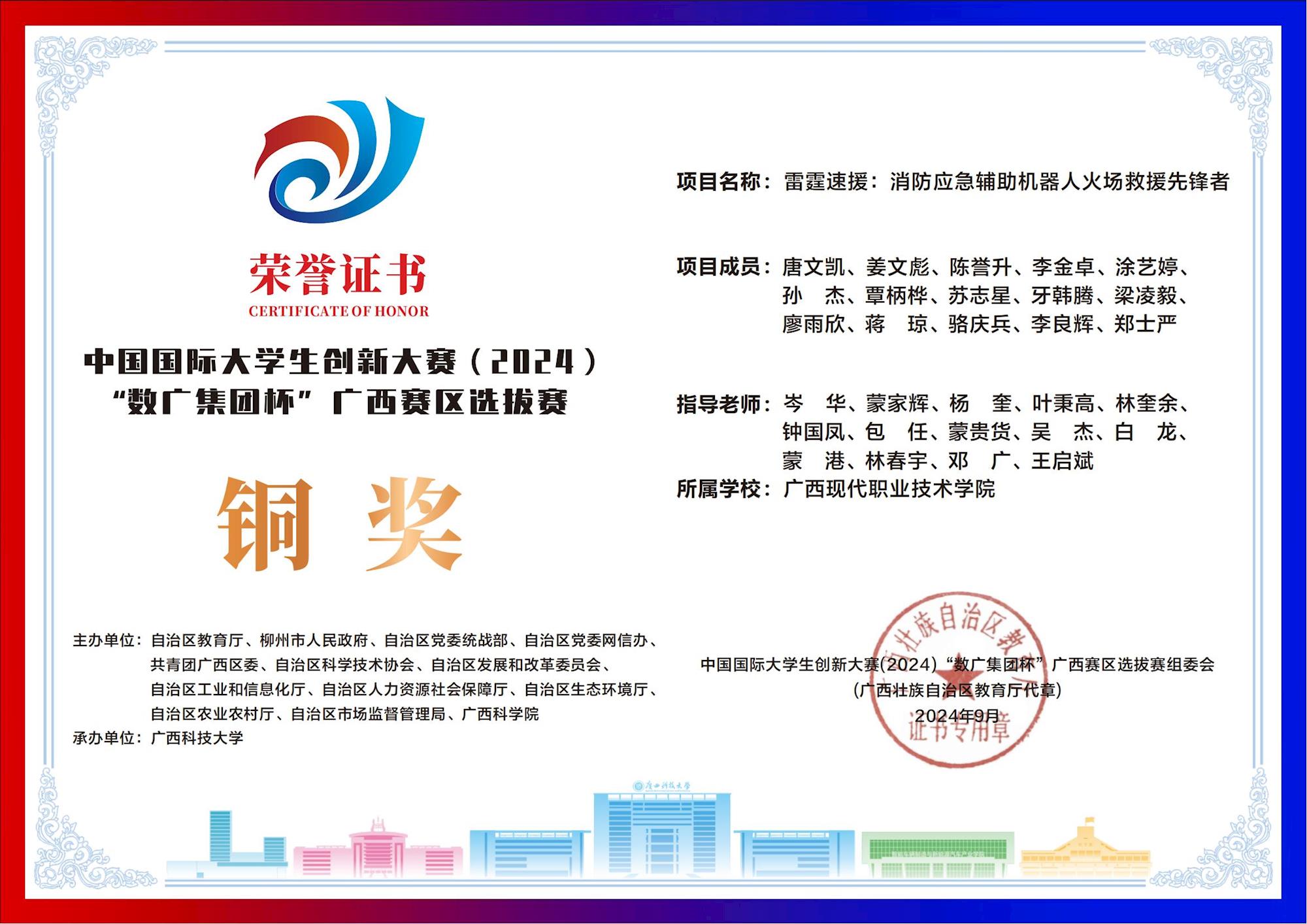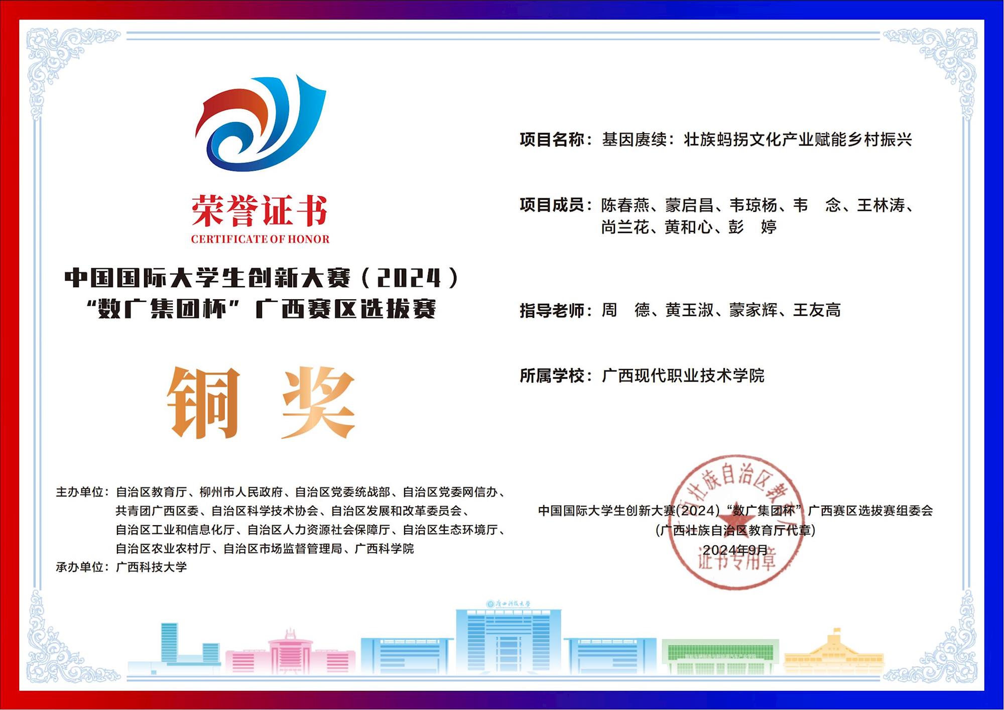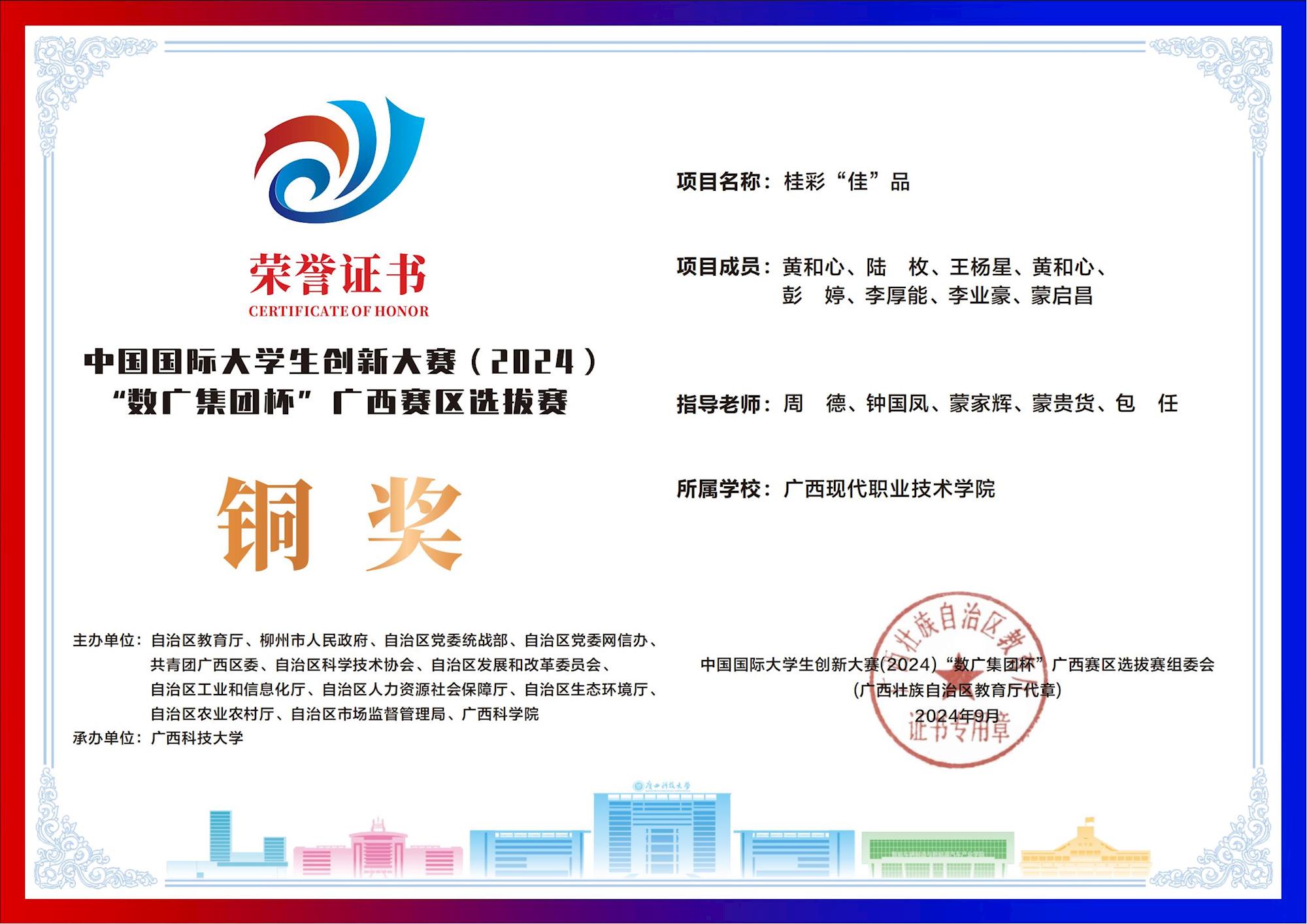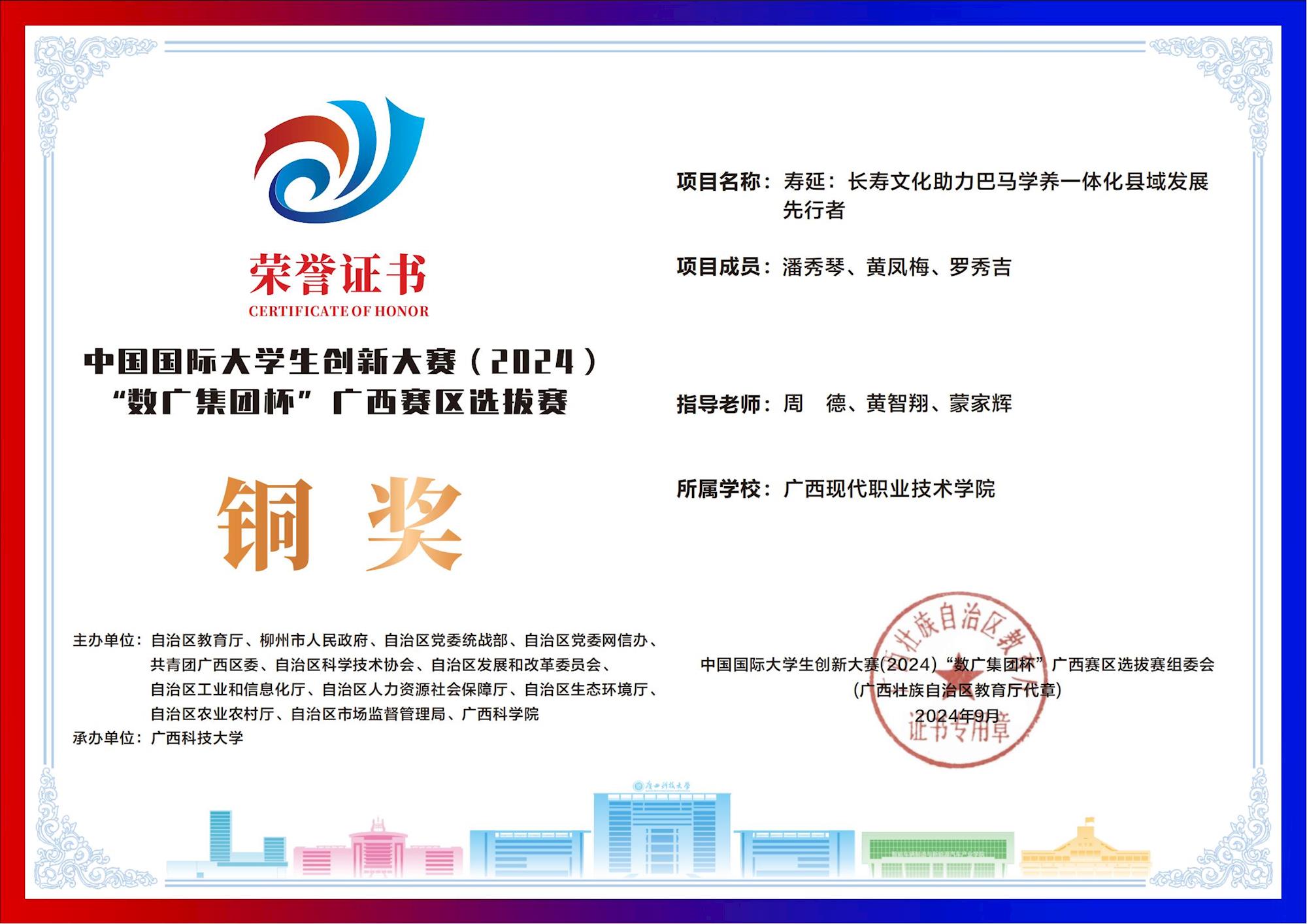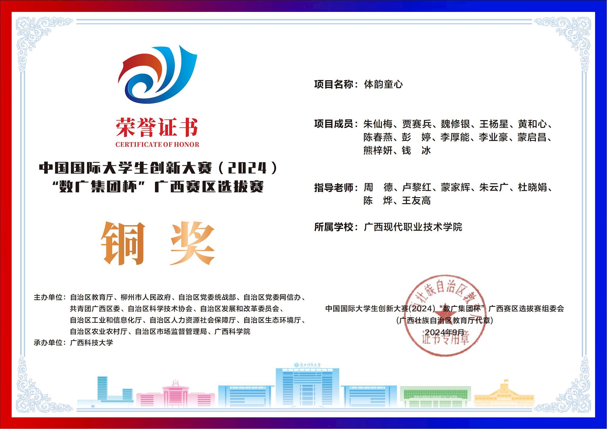 中国国际大学生创新大赛(2024) “数广集团杯”广西赛区选拔赛:我校斩获“青年红色筑梦之旅”赛道1银15铜! 来源:文/蒙贵货 图/蒙贵货 发布时间:2025-10-20 09:20:17 浏览次数: 次 【字体:小 大】 在2024年中国国际大学生创新大赛“数广集团杯”广西赛区选拔赛中,我校学子在“青年红色筑梦之旅”赛道表现卓越,斩获银奖1项、铜奖15项,以创新实力彰显职教风采! 终审:cxcyxy001 【打印正文】 相关信息
